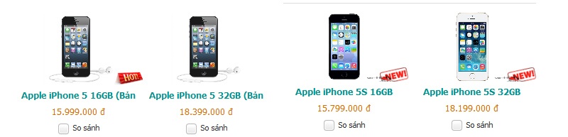 Theo đó, iPhone 5 chính hãng đang được rao bán với giá 16 triệu đồng. Tính ra, giá bán của model này cao hơn giá iPhone 5S khóa mạng Viettel (15,8 triệu đồng) hoặc đi kèm gói cước trả sau của VinaPhone (15,6 triệu đồng). Ngay cả với iPhone 5S bản mở mạng hoặc trả trước từ nhà mạng, giá của iPhone 5 chính hãng cũng chỉ thấp hơn khoảng 500.000 đồng, đối với bản 16 GB (16 triệu so với 16,5 triệu đồng).