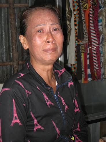 | Bà Thạch Thị Lợi không cầm được nước mắt khi nghĩ đến chuyện con trai phải bỏ xác ở biển. |