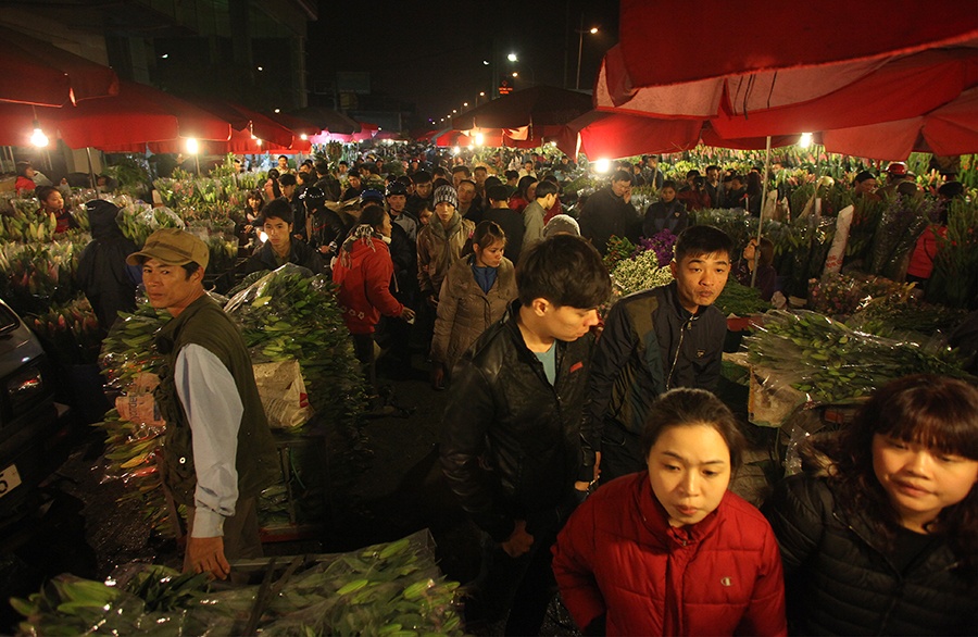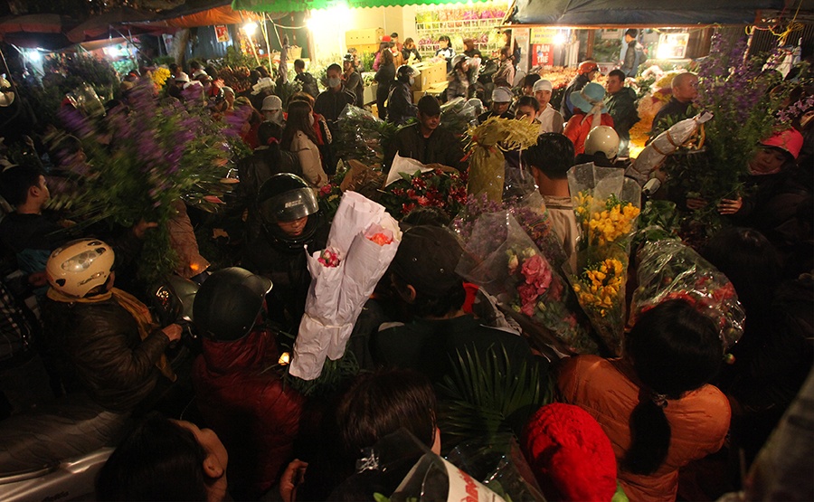 Nghìn người đi mua hoa Tết lúc nửa đêm ở Hà Nội