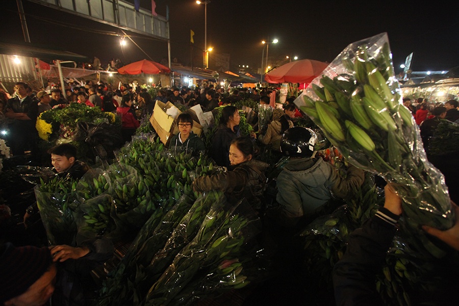 Chợ hoa Quảng An là nơi phân phối hoa cho toàn bộ thị trường Hà Nội. Những ngày giáp Tết không khí nơi đây nhộn nhịp cả ngày lẫn đêm.