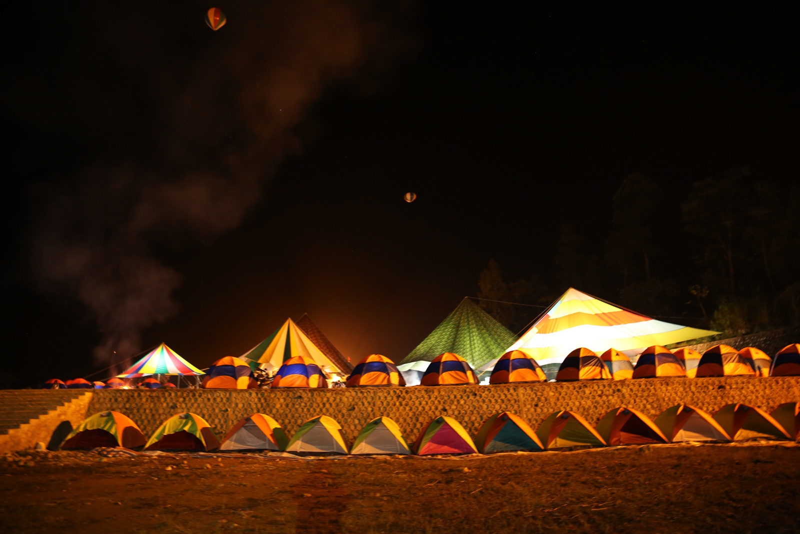 160 chiếc lều được Hiệp hội du lịch Hà Giang dựng lên phục vụ khoảng 1.000 người trong khuôn viên Trường nghề Đồng Văn những ngày qua sau khi địa phương này quá tải khách du lịch.