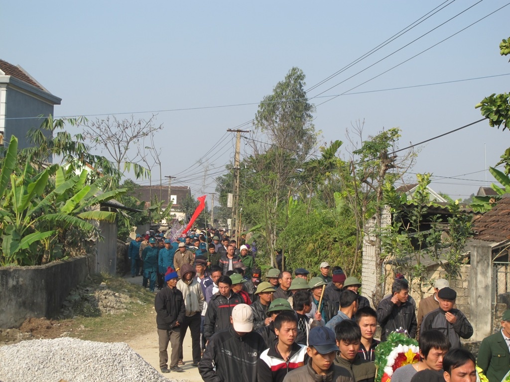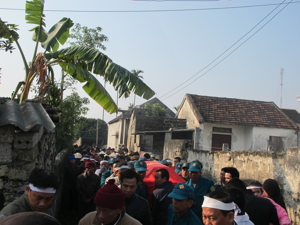| Có đến hàng nghìn người tới dự đưa tang, tiễn đưa thi thể anh Hạnh về nơi an nghỉ cuối cùng. Dòng người kéo dài từ đầu đến cuối làng. Chưa bao giờ người dân địa phương thấy một đám tang đông như vậy. |