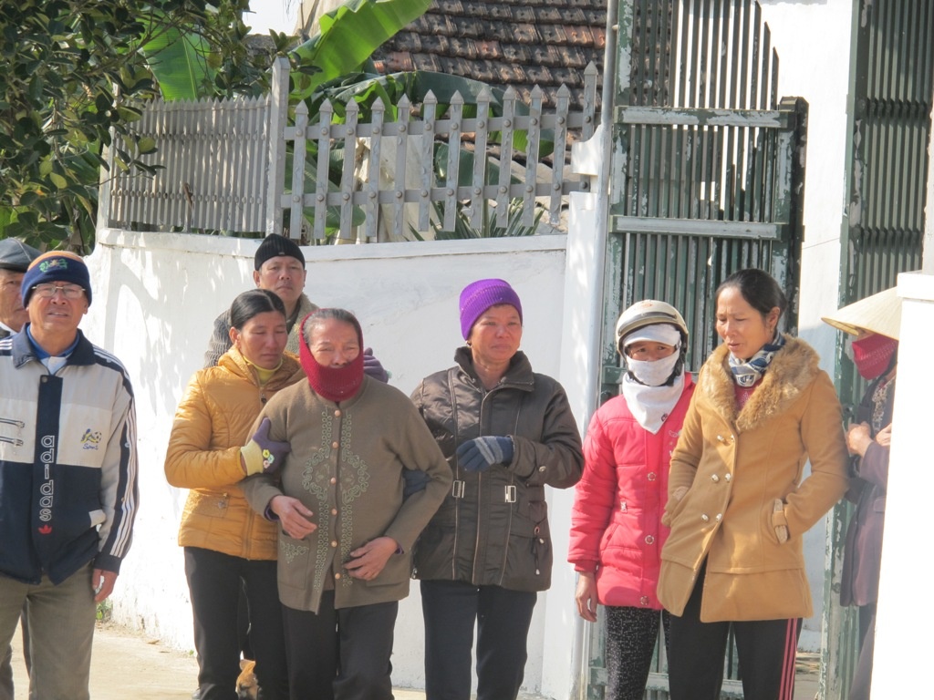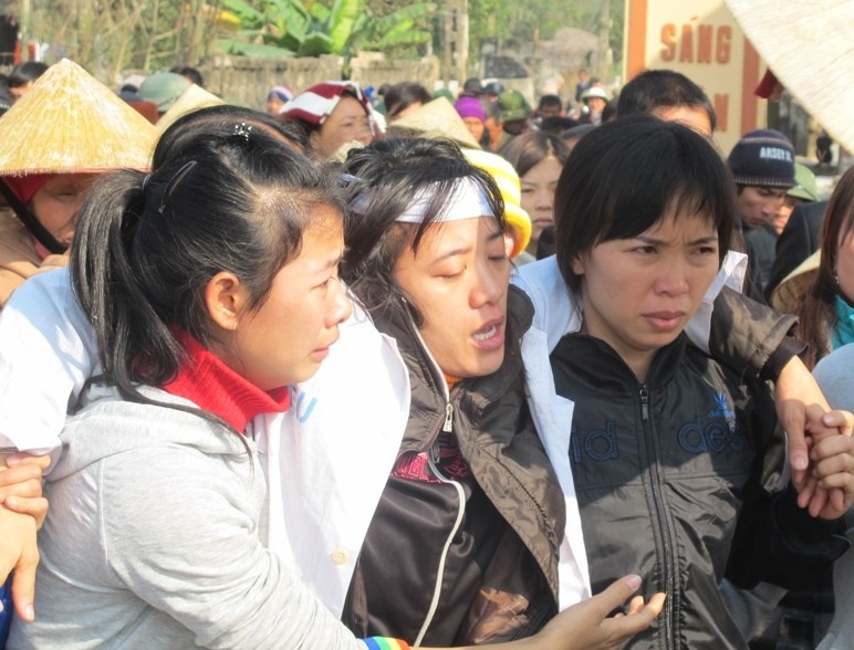 | Chị Dung, vợ anh Hạnh và ông Hà đã ngất, được đưa trở về khi quan tài ra đến cổng làng. Bà Đúc vẫn chưa tỉnh từ khi hay tin mất con. |