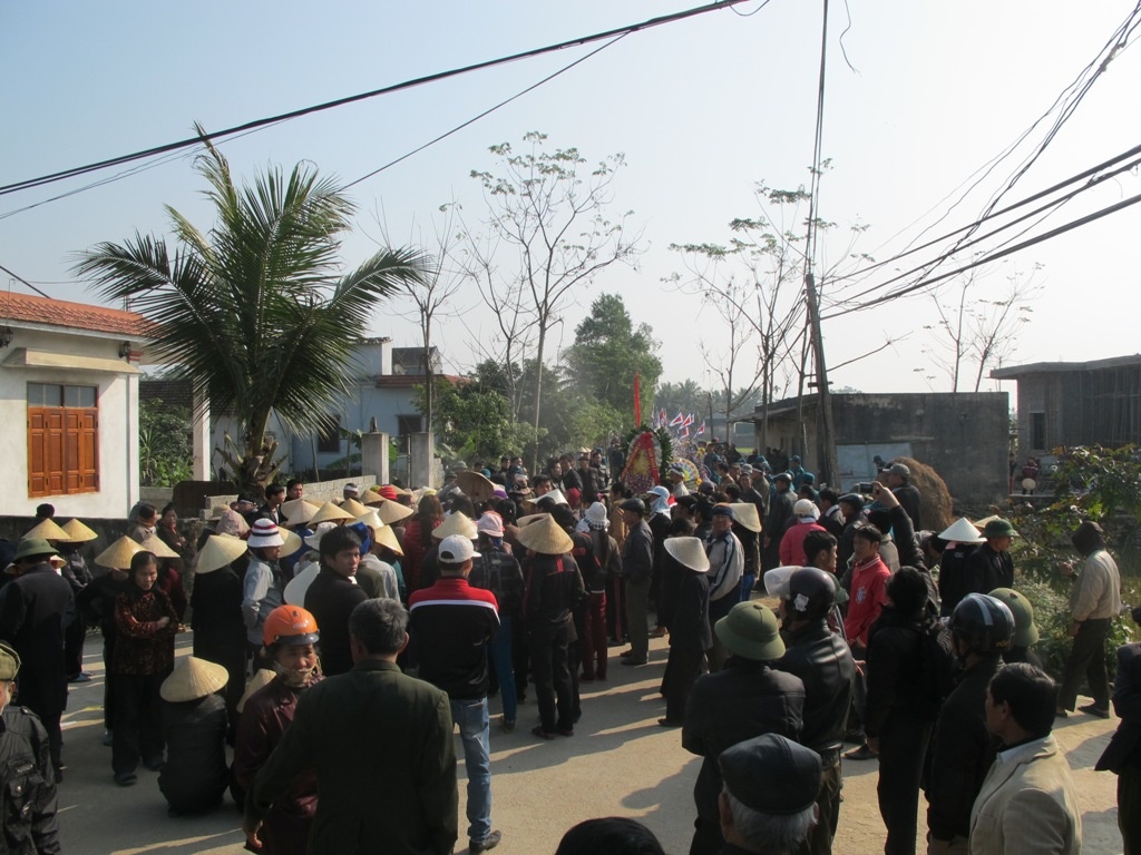 Dòng người đưa tang kéo dài đến hàng cây số, từ đầu làng đến cuối làng.