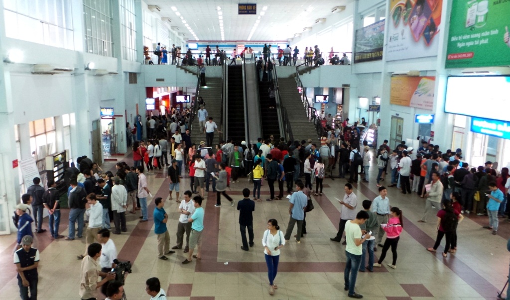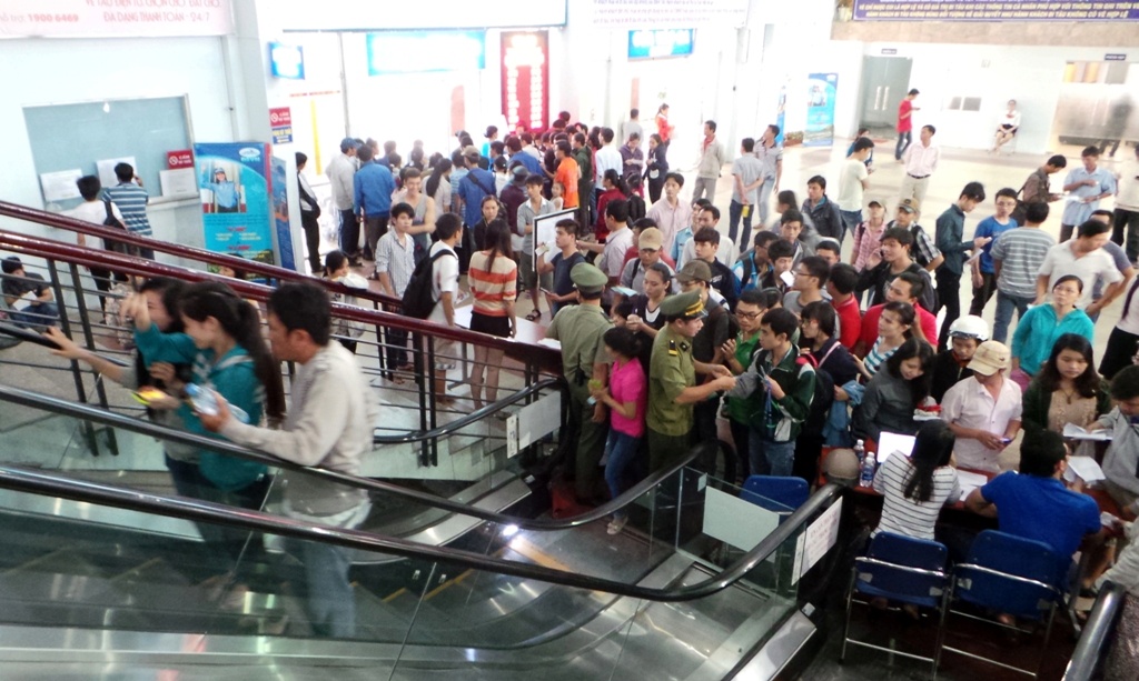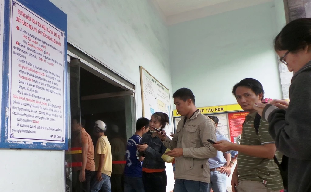 | Ga Sài Gòn thông báo chỉ cấp số thứ tự cho những người nhắn tin qua tổng đài và vé tàu sẽ chỉ được bán cho những người có số thứ tự từ việc nhắn tin nên nhiều người kéo đến khu vực hướng dẫn cách nhắn tin lấy số thứ tự. Việc lấy số thứ tự bằng tin nhắn có ưu điểm là nhanh, khách không cần lên trực tiếp ga để lấy nhưng cũng gây khó khăn cho một số người, nhất là những người lớn tuổi, ít sử dụng điện thoại di dộng. |