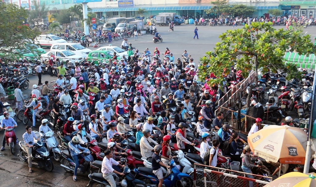 | Phía bên ngoài, hàng trăm xe máy vẫn chen chúc vào bãi gửi gây nên tình trạng kẹt cứng. Nhiều người phải đứng chờ gần 30 phút mới gửi được xe. Ga Sài Gòn đã lập thêm hai bãi giữ xe mới nhưng không đủ phục vụ lượng xe máy đổ về tăng đột biến như hôm nay. |