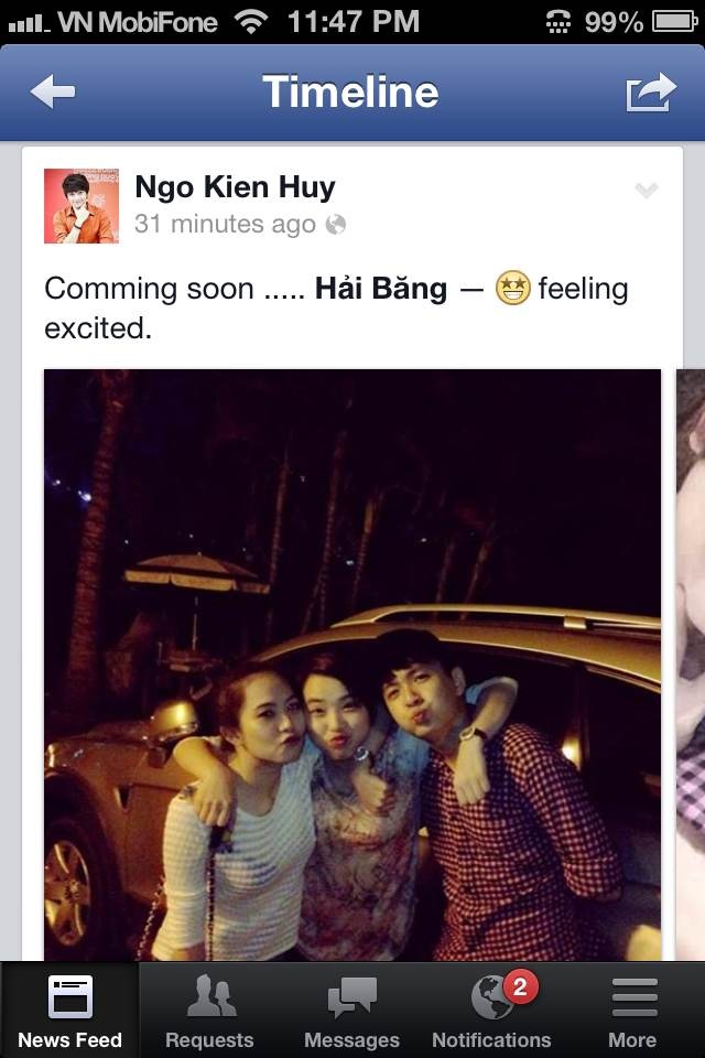 Hình ảnh một cô gái lạ khoác tay Ngô Kiến Huy được chia sẻ trên mạng xã hội khiến nhiều fan của chàng Bắp bất ngờ. Đặc biệt, một số khán giả còn khẳng định nhìn thấy cặp đôi thể hiện tình cảm hơn mức bình thường. Điều này càng khiến các fan lo lắng nam ca sĩ đã chia tay Khổng Tú Quỳnh và có bạn gái mới. Tuy nhiên, khi liên lạc với Ngô Kiến Huy, anh khẳng định hoàn toàn không có chuyện đó. Nam ca sĩ cũng cho biết, hình ảnh này được chụp tối 13/1 khi anh đi ăn cùng vài người bạn đồng nghiệp, trong đó có Hải Băng.