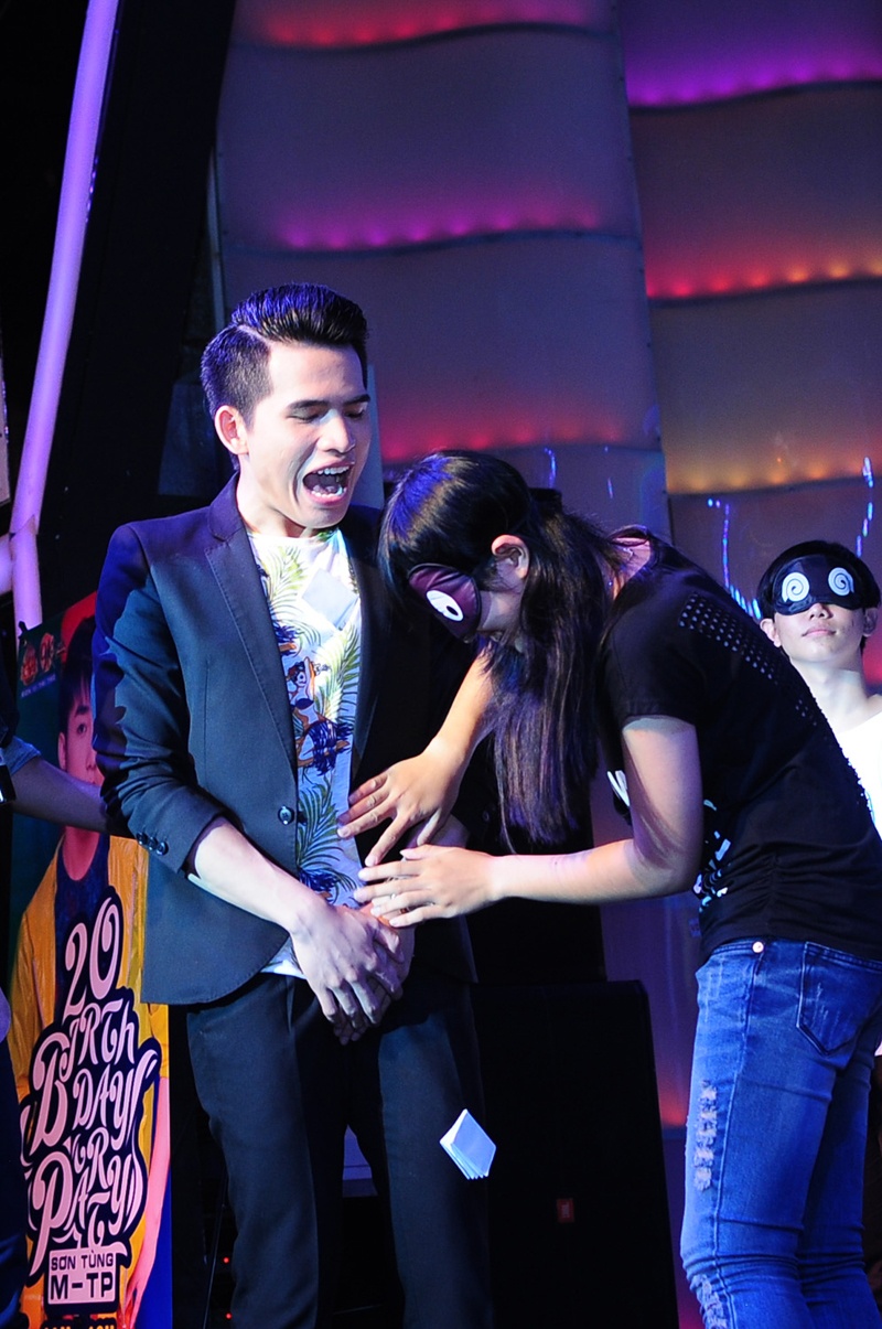 | Góp mặt ở sự kiện, Ngô Kiến Huy phải làm khách mời bất đắc dĩ tham gia trò chơi giao lưu cùng với các fan Sơn Tùng. |