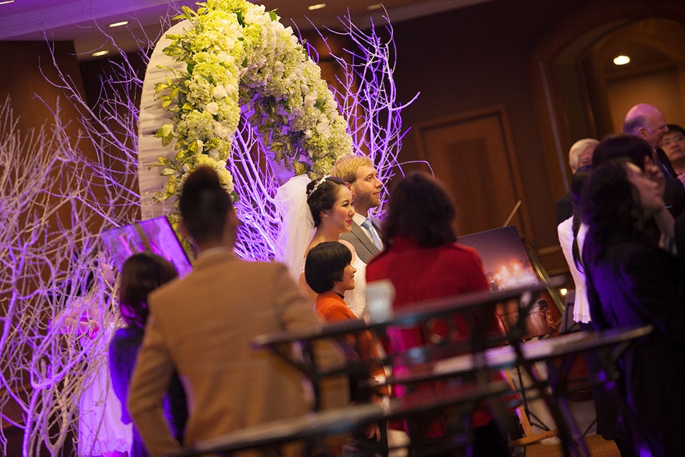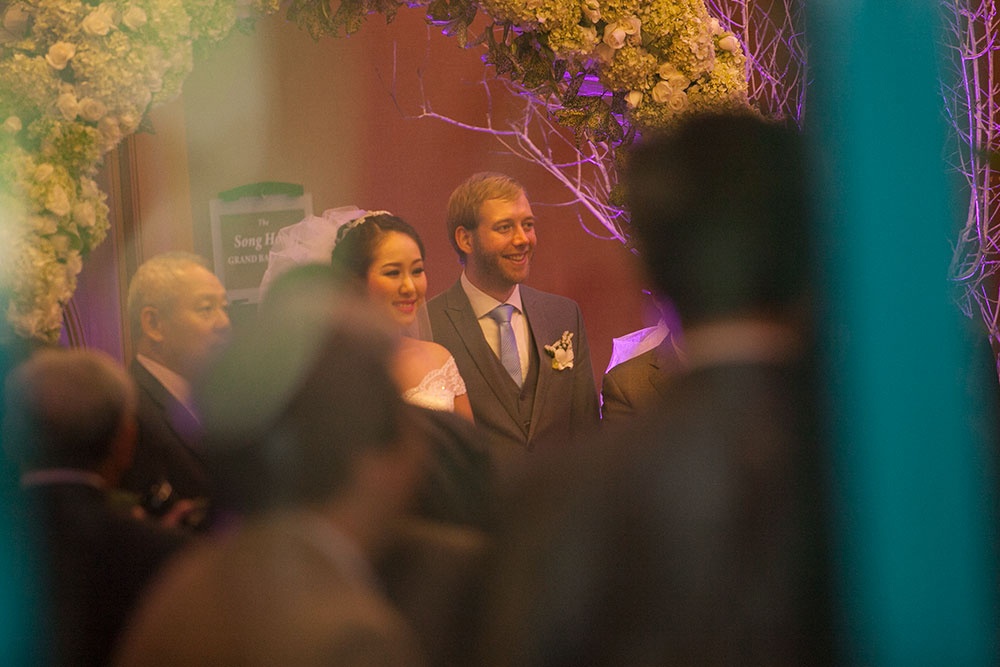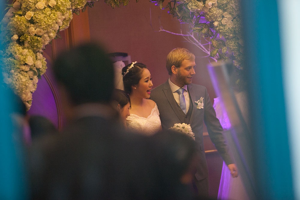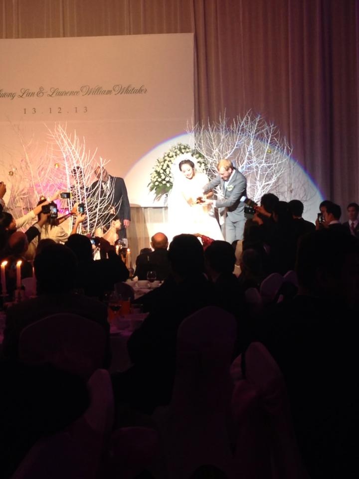 19h50: Ngô Phương Lan và Loz Whitake cùng dắt tay nhau làm lễ và rót rượu.
