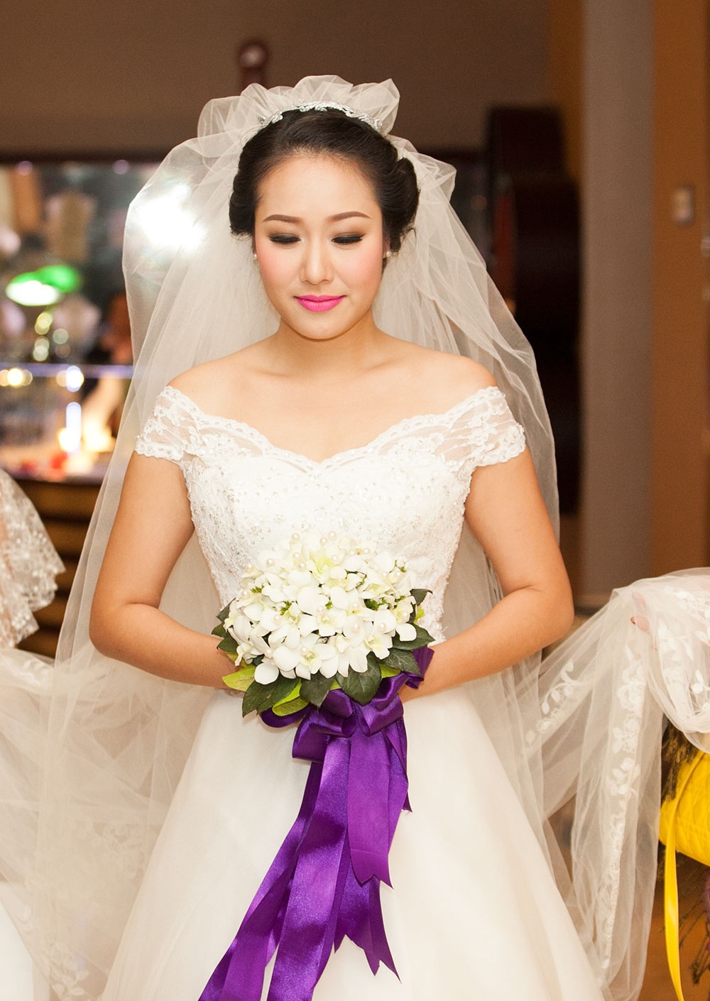 Cô dâu thu hút mọi ánh nhìn dù chọn đầm cưới và kiểu trang điểm đơn giản.