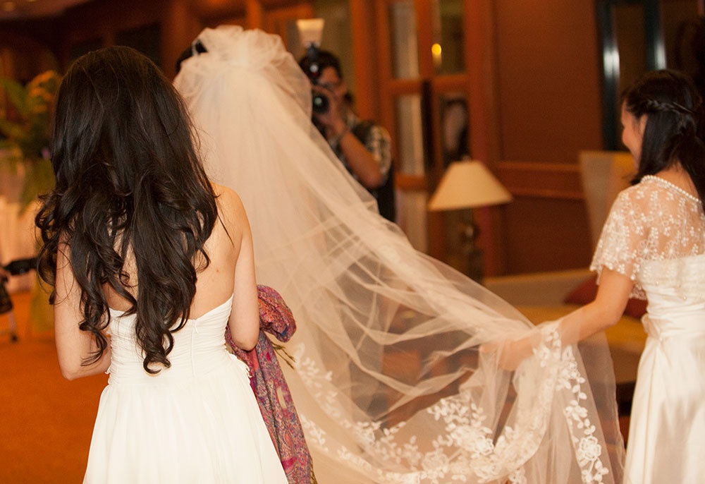 Ngô Phương Lan được hai phù dâu "hộ tống" vào phòng tiệc.