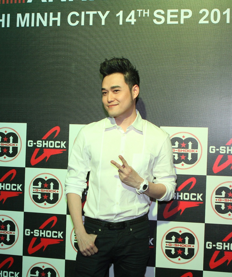| Ca sĩ Quang Vinh diện trang phục đơn giản tham dự sự kiện. |