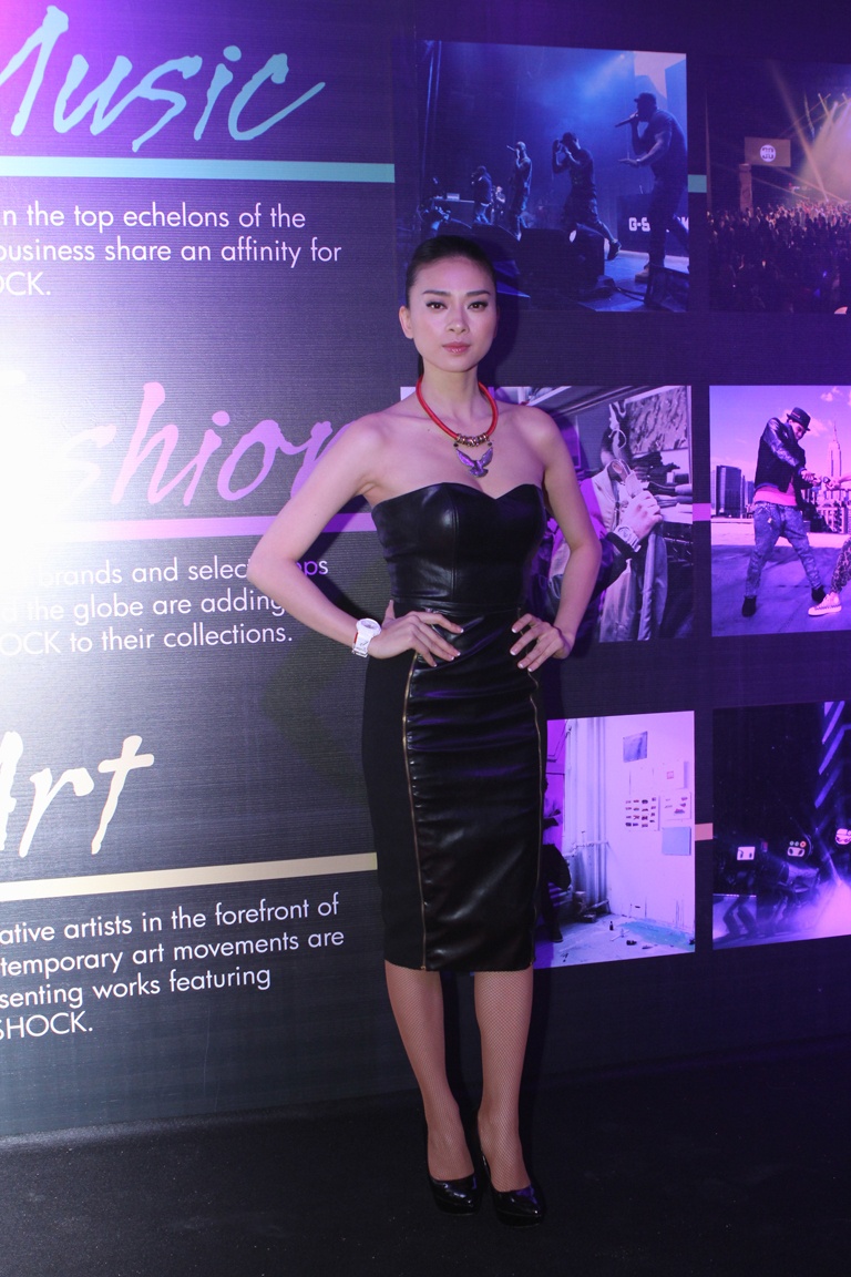 | Thiết kế bằng da ôm sát tôn vinh vóc dáng quyến rũ của cựu người mẫu đình đám một thời. |