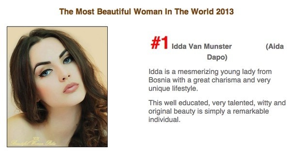 Người đứng đầu danh sách 50 người phụ nữ đẹp nhất thế giới năm 2013, không phải là một diễn viên, người mẫu hay ca sĩ. Đó là một cô gái trẻ đến từ Bosnia có tên Idda Van Munster.