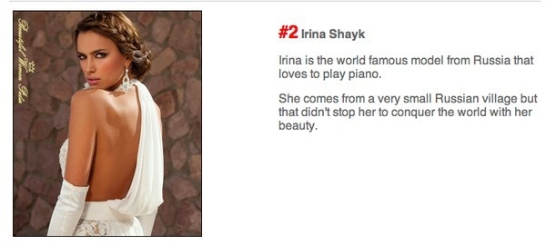 | Dù được giới thiệu là người mẫu nổi tiếng thế giới tới từ xứ sở Bạch Dương song Irina Shayk chỉ "cán đích" ở vị trí thứ 2. |