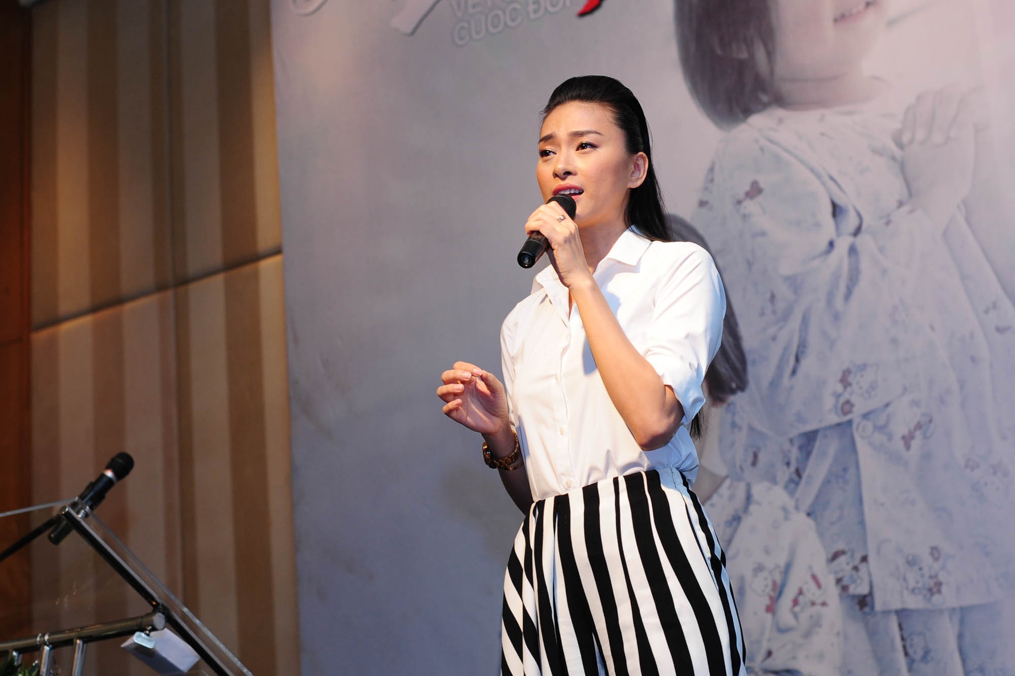 Các nhà hảo tâm có thể quyên góp qua hình thức mua vé tham dự đêm gala. Diễn viên múa Linh Nga rạng rỡ tới tham gia buổi họp báo.