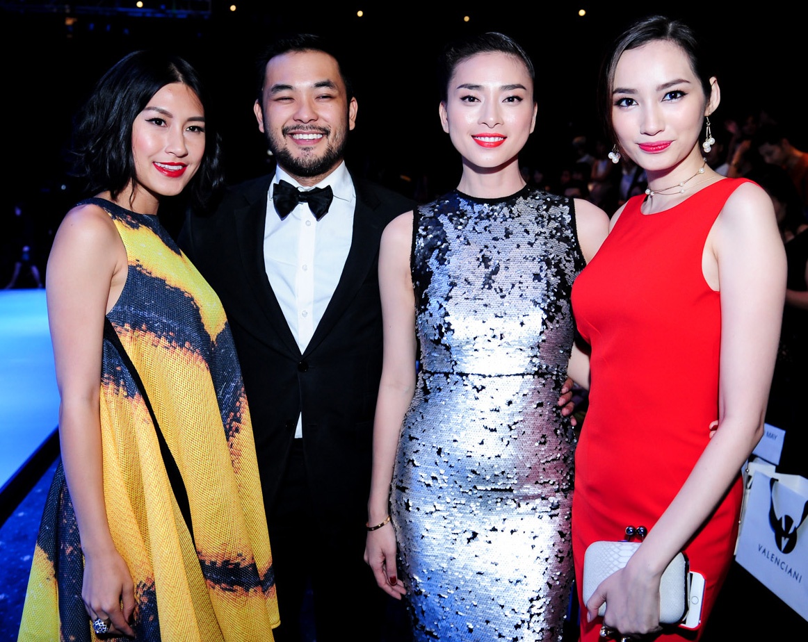 | Ngô Thanh Vân khoe hình xăm trên vai với một mẫu thiết kế mới tại sự kiện. Cô tham gia cả hai suất diễn trong ngày thứ ba của Tuần lễ thời trang quốc tế Việt Nam và bày tỏ sự yêu thích các bộ sưu tập mới của Lê Thanh Hoà, Adrian Anh Tuấn, Federick Lee và Somarta. |