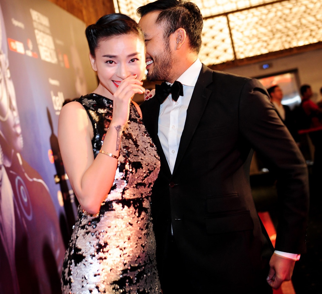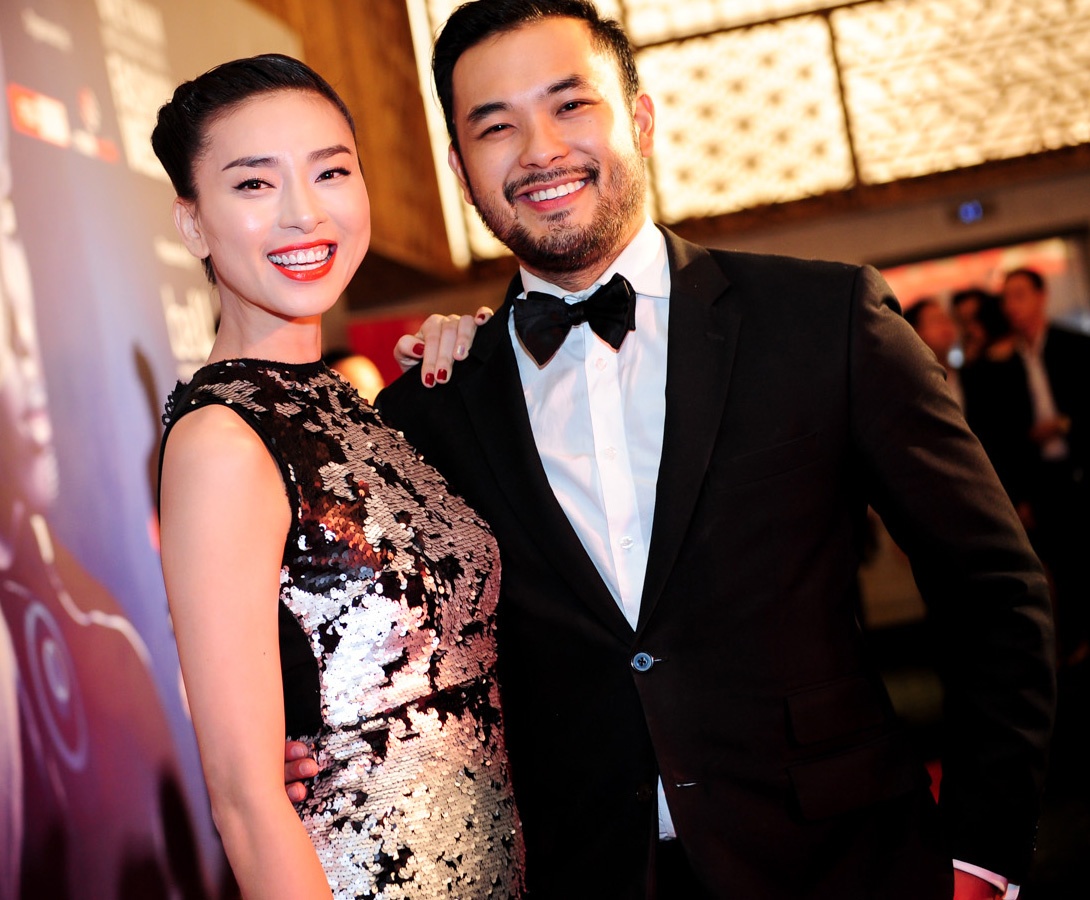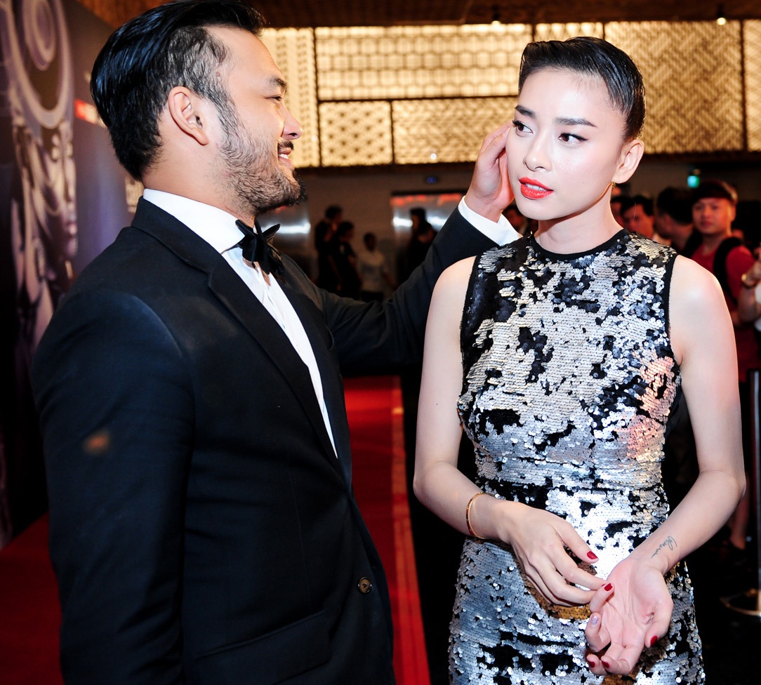 | Anh cũng đưa tay vén tóc cho Ngô Thanh Vân. Cặp đôi dành nhiều cử chỉ quan tâm, tình cảm ngay trên thảm đỏ. |