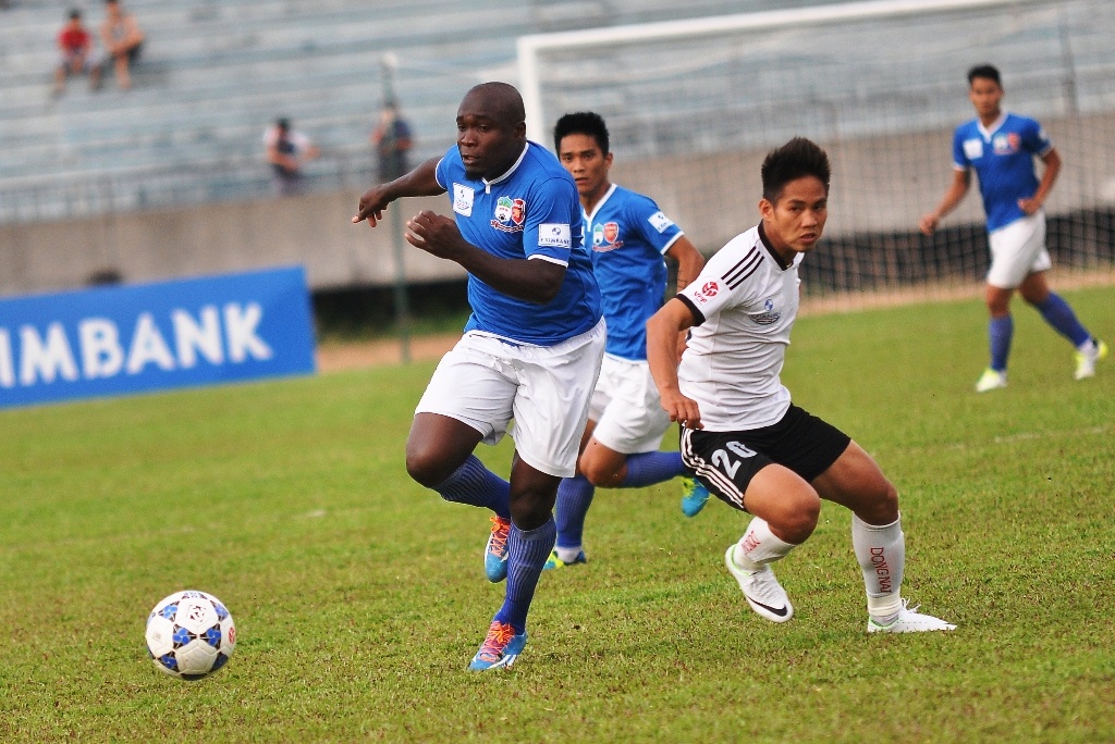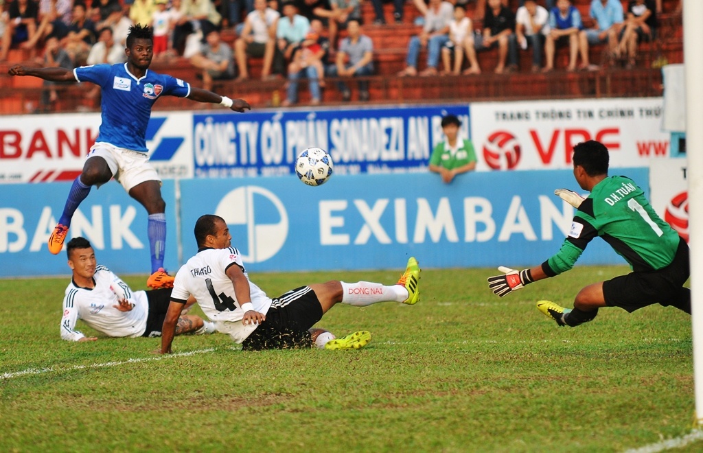 | Timothy là mối đe dọa lớn nhất của HAGL, nhưng trận này anh bị các hậu vệ Đồng Nai theo rất sát. |