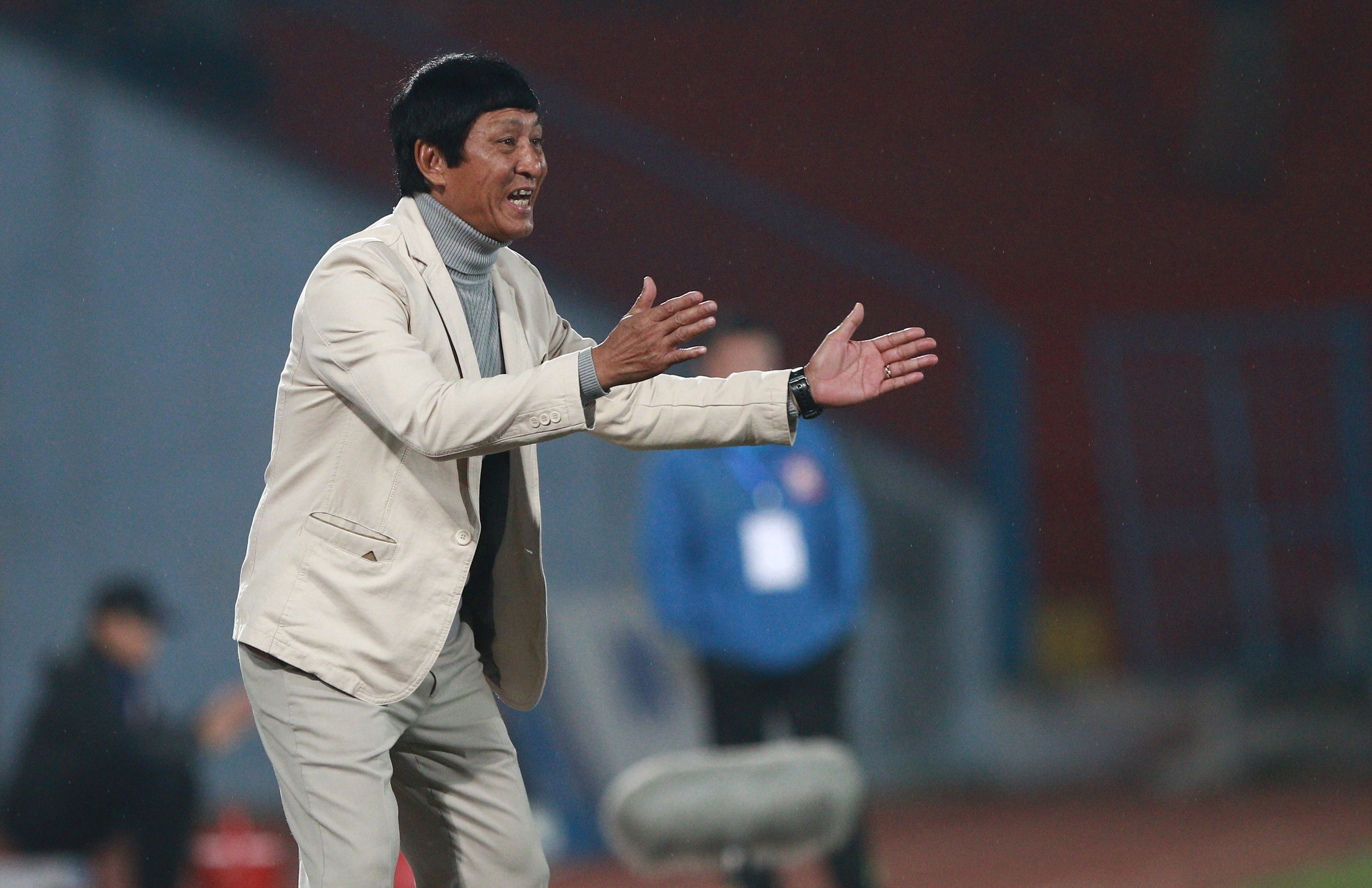 Cuối hiệp 2, HLV Vũ Bảo Quang truyền lửa cho các học trò tràn lên tấn công để tìm bàn gỡ.