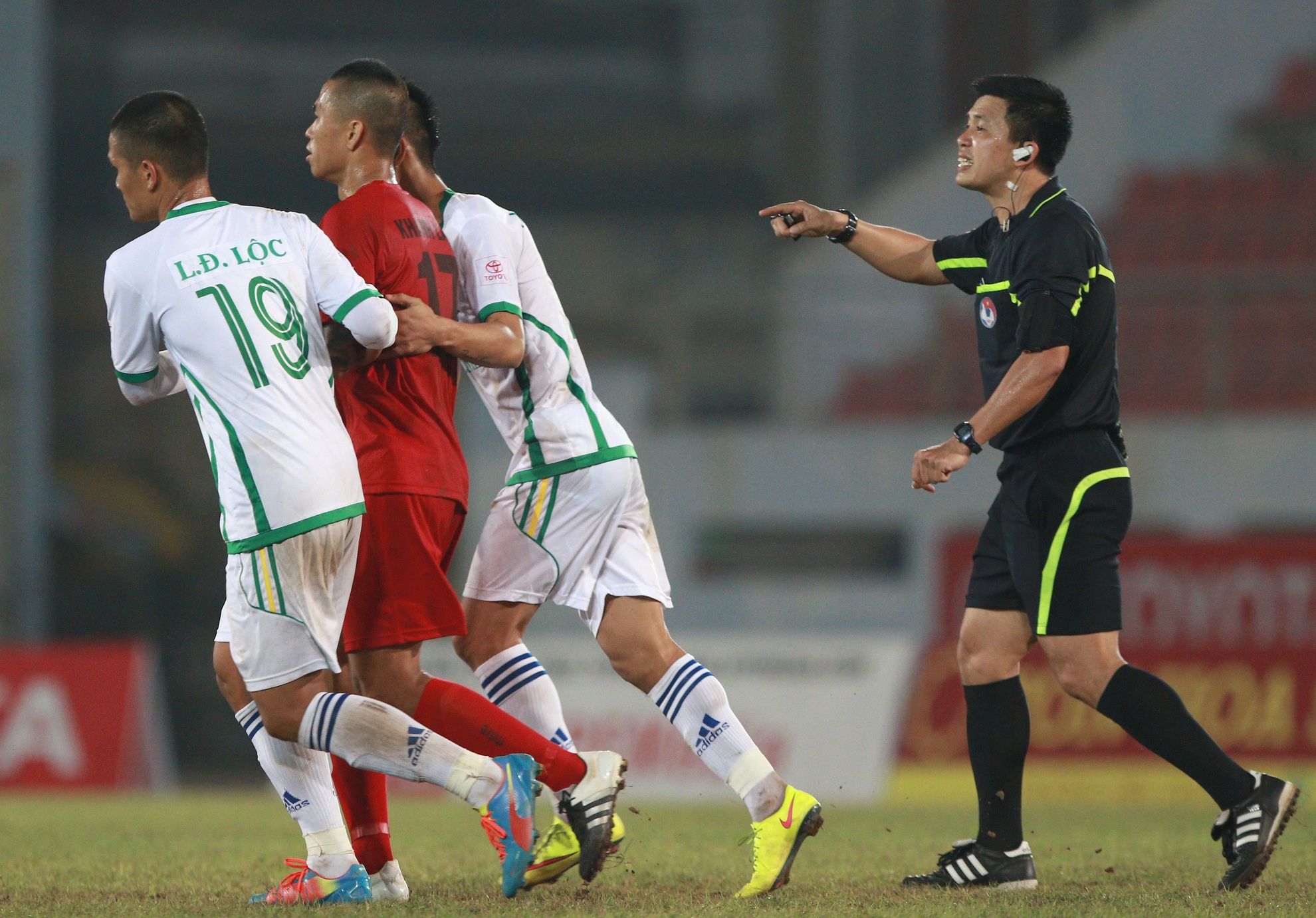 Những phút cuối trận, CLB Hải Phòng sử dụng quyền thay người để tìm cách câu giờ và làm cho đối phương nôn nóng. 2 cầu thủ Cần Thơ phải chạy tới kéo tiền vệ Khánh Lâm của Hải Phòng rời sân.
