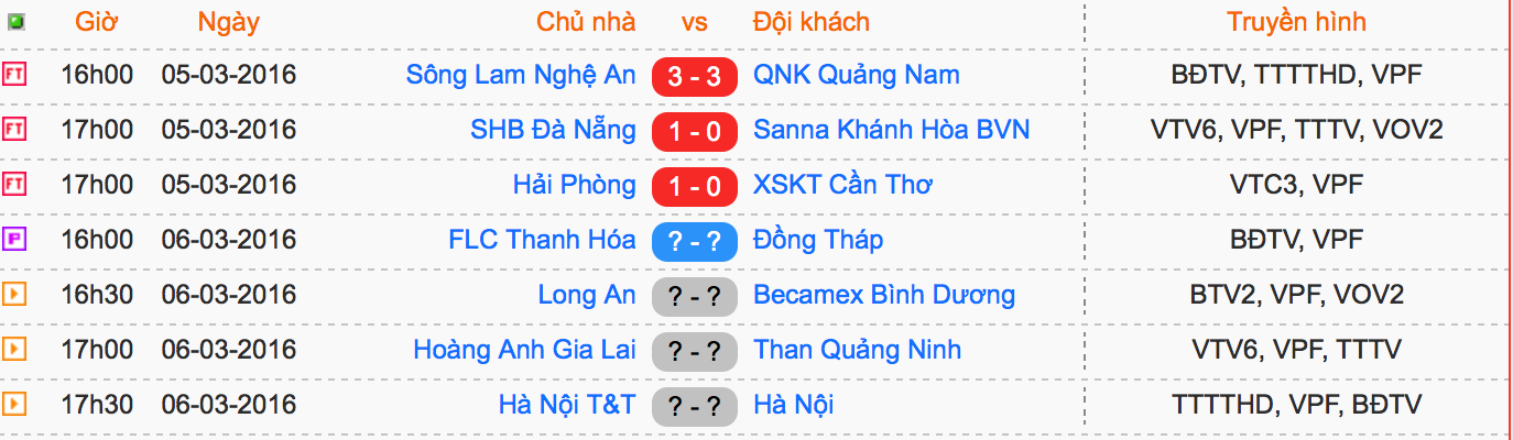 Kết quả các trận đấu sớm vòng 3 V.League 2016. Do tình hình an ninh, Ban tổ chức sân Thanh Hóa đã tạm hoãn trận đấu Thanh Hóa - Đồng Tháp và chưa ấn định ngày thi đấu bù.
