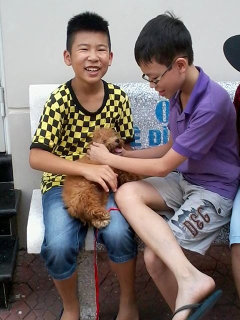 | Cậu nhóc rất thích rủ bạn bè cùng chơi đùa và chăm sóc cho chú cún mới được ba mẹ sắm cho. |