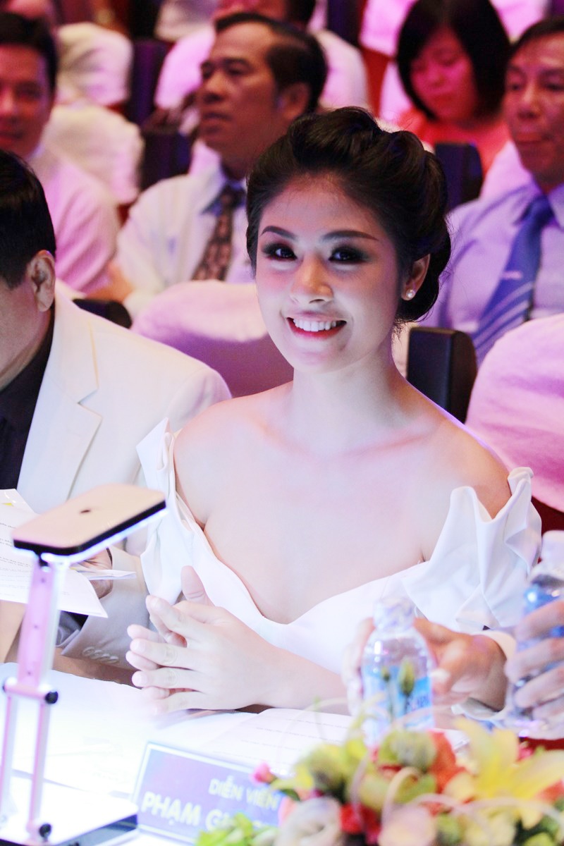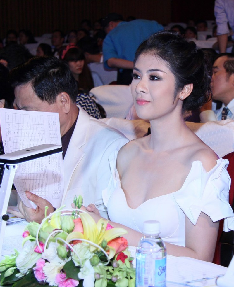 | Hoa hậu thu hút mọi ánh nhìn khi diện chiếc đầm trắng trễ nải xuống hai vai, khoe vòng một gợi cảm. Kể từ sau khi đăng quang hoa hậu, Ngọc Hân thường xuyên được mời làm giám khảo trong các cuộc thi nữ sinh. |