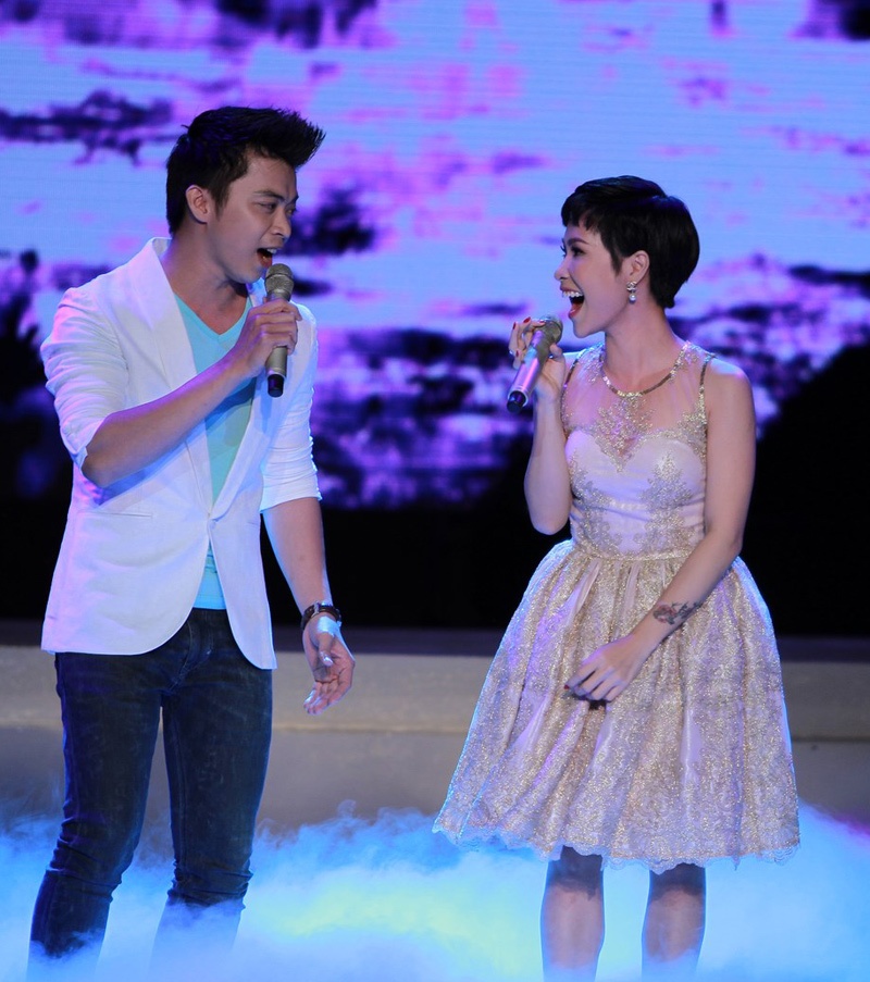 | Đêm chung kết cuộc thi Nữ sinh viên duyên dáng Việt Nam còn xôm tụ với sự góp mặt của nhiều ca sĩ tham gia biểu diễn. Uyên Linh và Lân Nhã cũng có màn kết hợp trên sân khấu với ca khúcThiên đường gọi tên. |