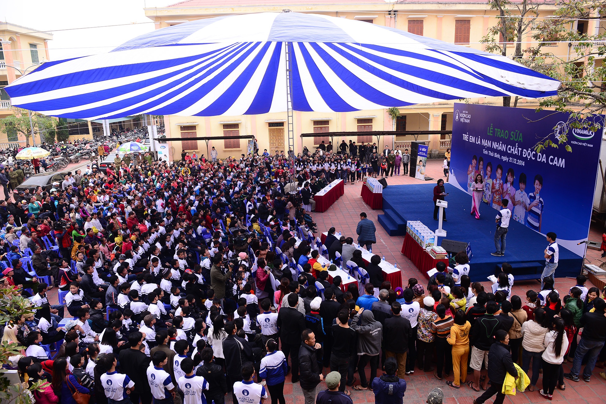 | Chiều 21/12, tại Trường Trung cấp nghề cho người khuyết tật tỉnh Thái Bình, Quỹ sữa “Vươn cao Việt Nam” thuộc Quỹ Bảo trợ trẻ em Việt Nam, Bộ Lao động - Thương binh và Xã hội đã tổ chức lễ trao sữa cho trẻ em là nạn nhân nhiễm chất độc da cam/dioxin tỉnh Thái Bình. Gần 500 trẻ khuyết tật, nhiễm chất độc màu da cam tại 8 huyện thị của tỉnh đã có mặt dự lễ trao tặng. |