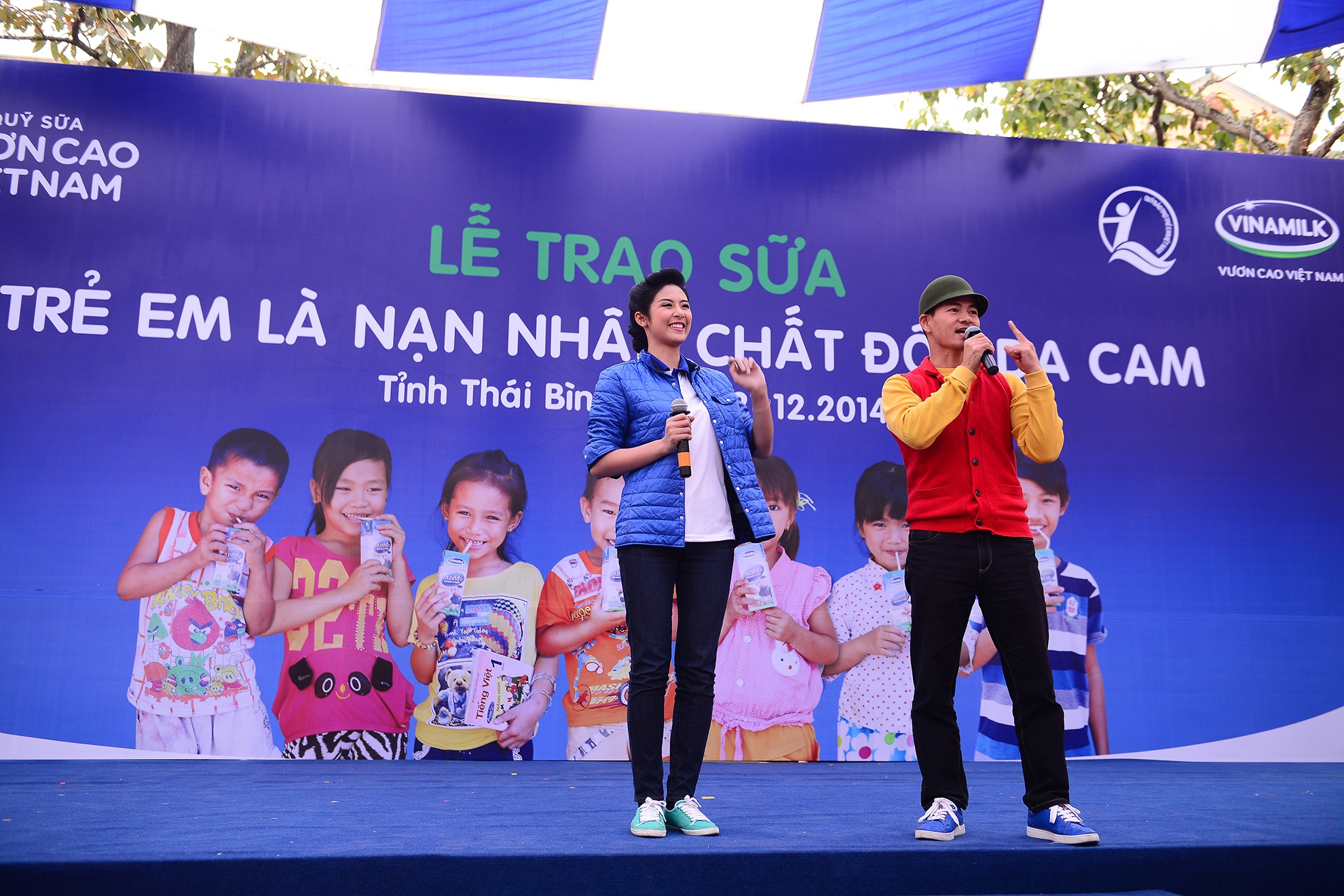 Hoa hậu Ngọc Hân, danh hài Xuân Bắc làm đại sứ cho Quỹ sữa Vươn Cao Việt Nam, trao tặng 54.000 ly sữa, mang niềm vui và tiếng cười đến cho trẻ khuyết tật tỉnh Thái Bình.