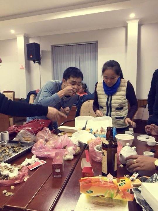 Theo những bức ảnh "chụp trộm" tại phòng tập của các Táo do ca sĩ Minh Quân chia sẻ, các nghệ sĩ tranh thủ ăn đêm sau gần 6 tiếng luyện tập.