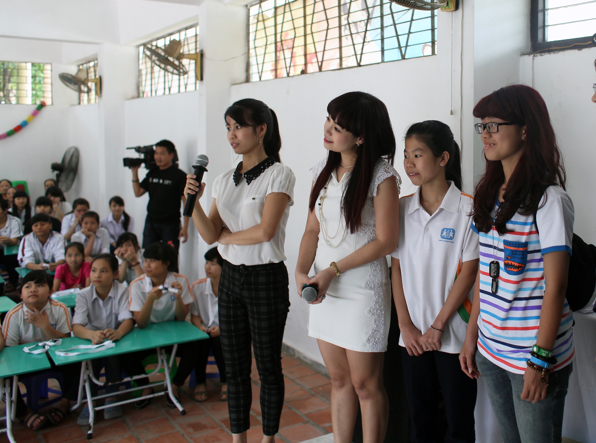 Chiều 7/5, Ngọc Khuê giao lưu với các em nhỏ trong một chương trình thiện nguyện tổ chức ở thủ đô.