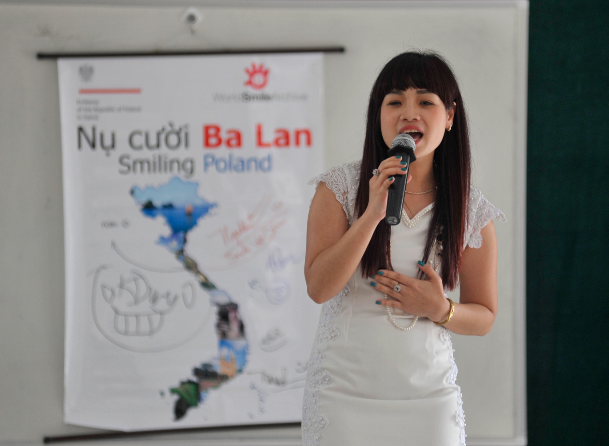 Giọng ca "Chuồn chuồn ớt" tươi rói khi tham gia chương trình xã hội tổ chức tại làng trẻ SOS Hà Nội.