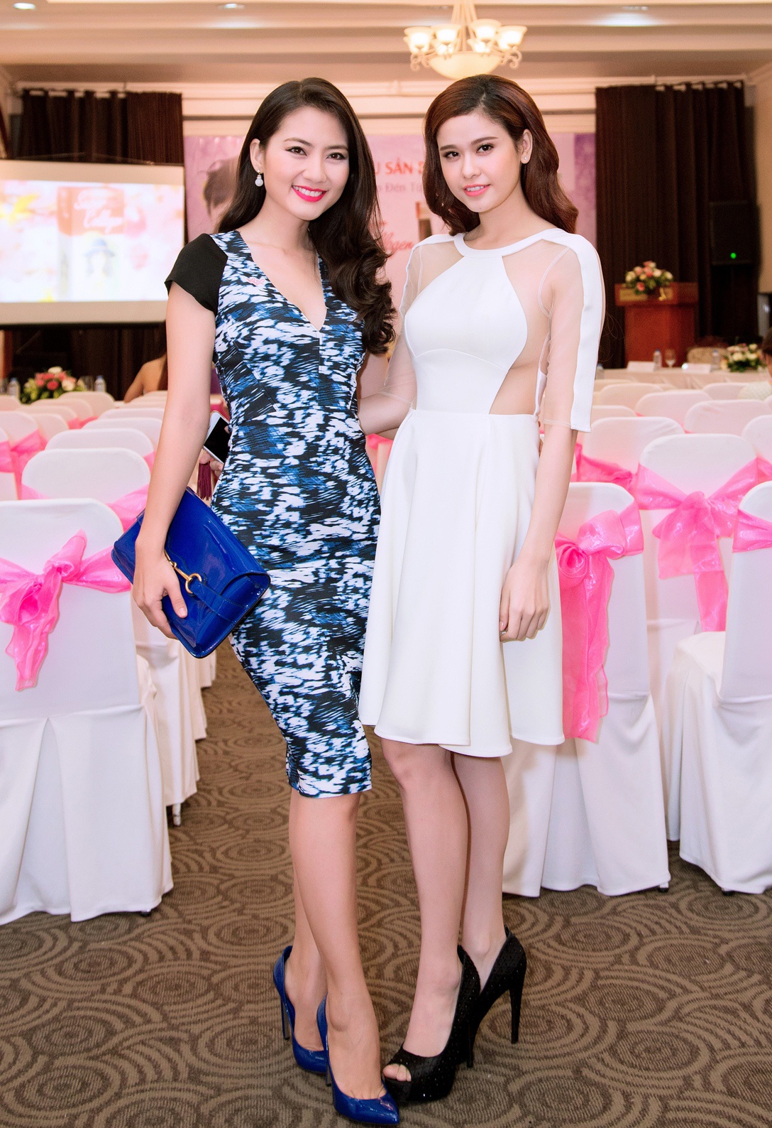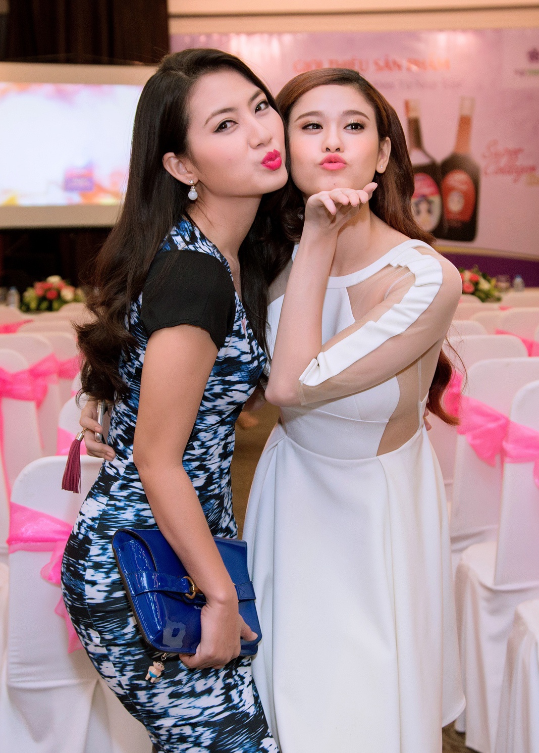 | Hai người đẹp vui mừng khi tái ngộ. Họ tạo dáng trẻ trung trước ống kính phóng viên. |