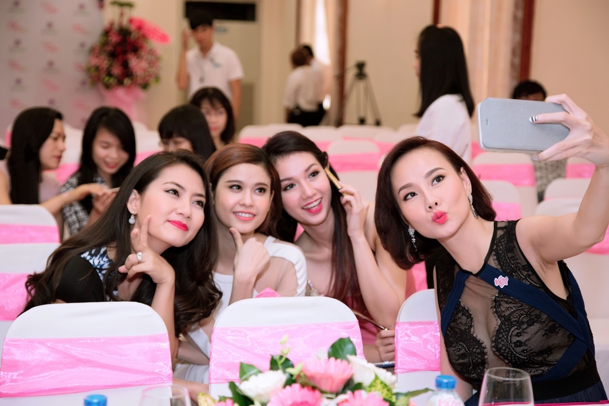 | Dương Yến Ngọc cũng là khách mời của sự kiện. Bà mẹ hai con mặc quyến rũ với đầm ren tối màu. Nhóm người đẹp Vbiz rạng rỡ khi cùng chụp ảnh. |