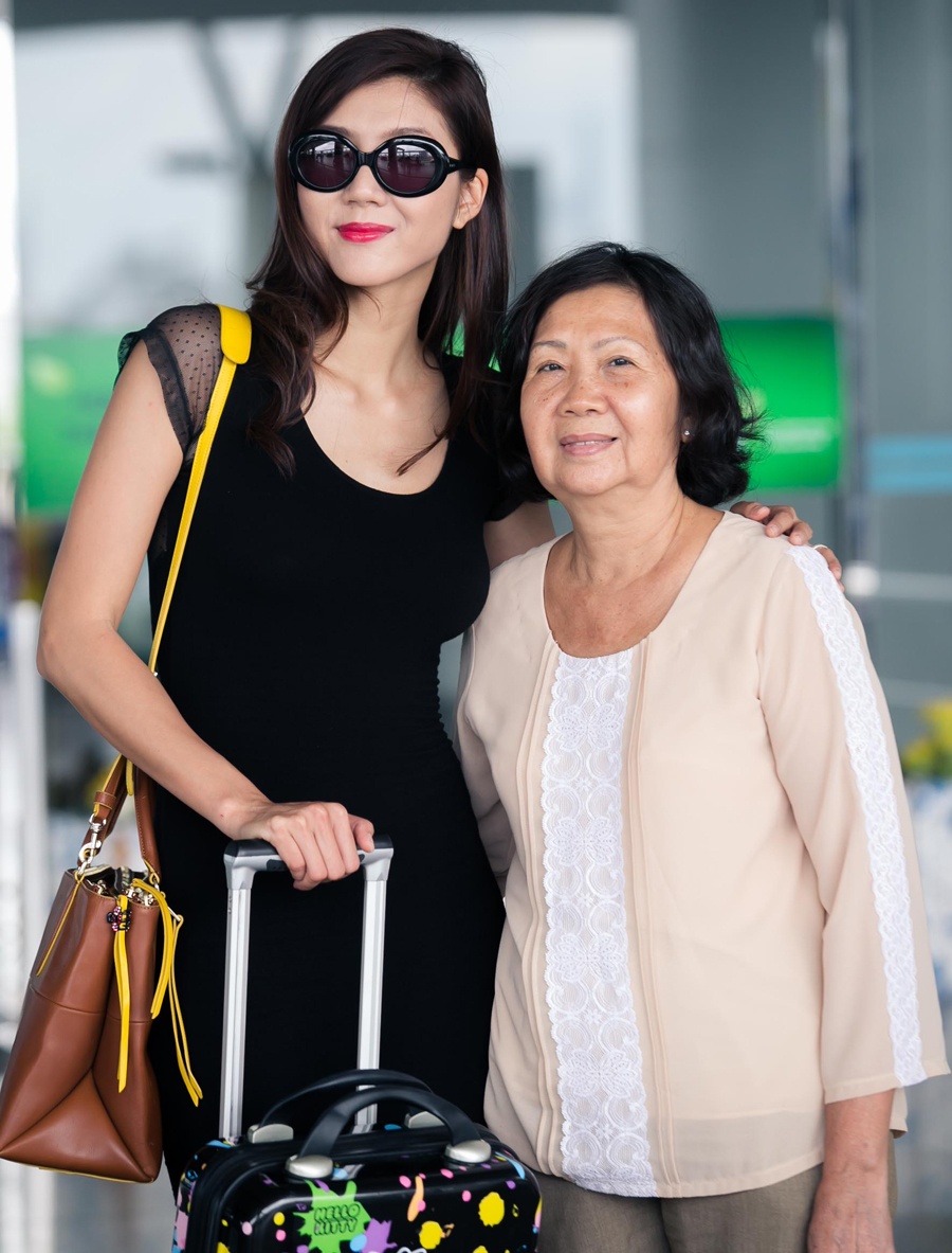 | Trưa ngày 17/9, Ngọc Quyên đáp chuyến bay về Mỹ đoàn tụ cùng chồng Việt kiều sau hơn nửa tháng ở Việt Nam thăm người thân và tổ chức quỹ làm từ thiện do cô và chồng sáng lập. Mẹ và anh trai có mặt ở sân bay để chia tay người đẹp. |