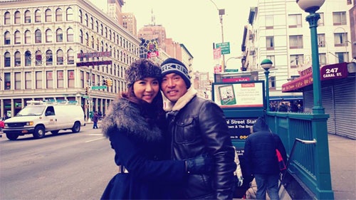| Ngọc Quyên hạnh phúc trong vòng tay người yêu khi du lịch quanh nước Mỹ. |