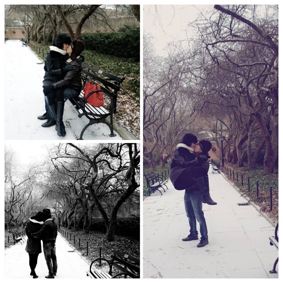 Chồng sắp cưới luôn dành cho Ngọc Quyên tình cảm nồng nhiệt. Cả hai không ngần ngại hôn nhau say đắm trong thời tiết giá lạnh của nước Mỹ.