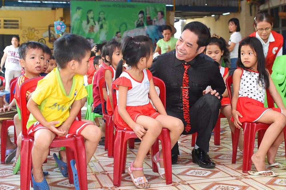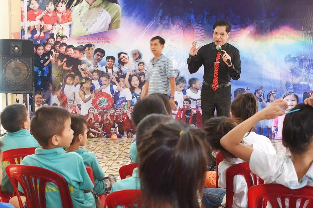 | Vốn là người ngại giao tiếp nhưng tại buổi phát quà Tết, nam ca sĩ gốc Hải Phòng đã trò chuyện, động viên các bé nhỏ vượt qua mọi khó khăn để sống vui vẻ, có ích cho đời. |