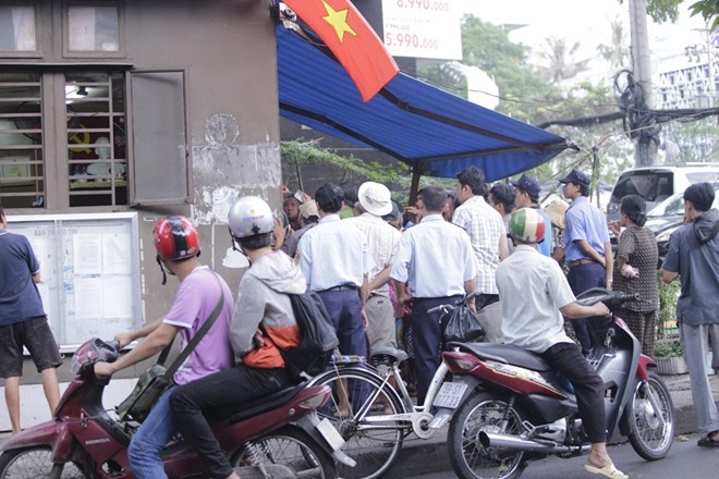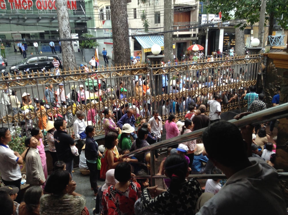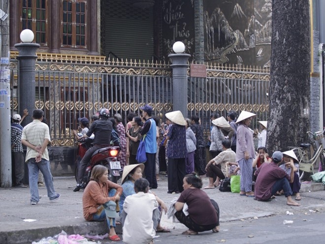| Ngày 26/11, rất nhiều người dân đã kéo đến ngôi biệt thự riêng của gia đình Ngọc Sơn trên đường Sương Nguyệt Ánh, quận 1, TP.HCM để chờ đợi nam ca sĩ phát gạo. Ngay từ sáng sớm, hàng trăm người dân đã ngồi xếp hàng đầy sân nhà nam ca sĩ gốc Cảng. |