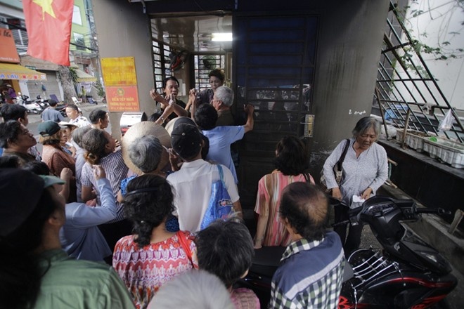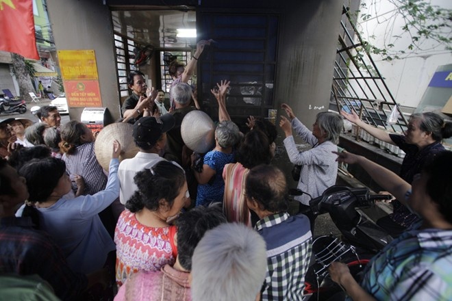 | Để tránh sự hỗn loạn xảy ra trước cửa nhà, cũng như gây ách tắc giao thông, ảnh hưởng đến những người xung quanh, mẹ Ngọc Sơn đã thay anh phát tiền cho mọi người. Tuy nhiên, bà chuyển sang một chốt dân phòng gần đó, để tiện cho việc phát tiền cho từng người. |