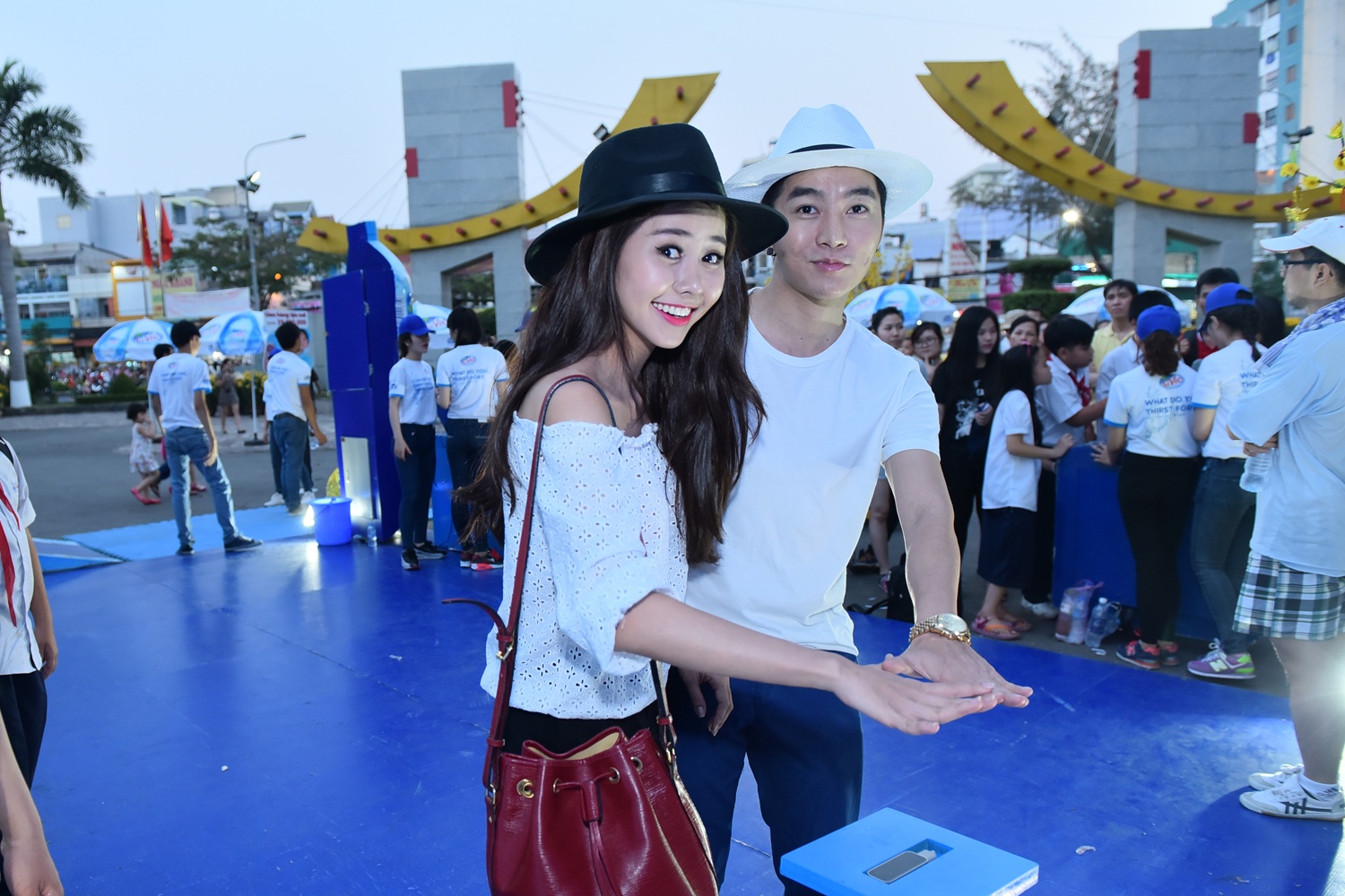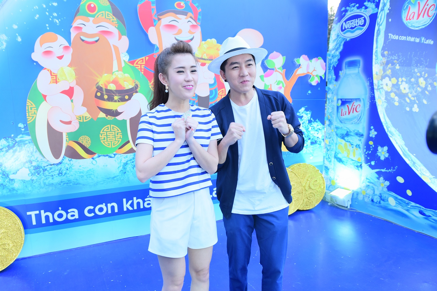 | Bộ đôi nhiệt tình tham gia các trò chơi vận động trước sự cổ vũ của khán giả. Tham gia sự kiện, Ngọc Thảo không ngần ngại tham gia các thử thách vận động. Ngọc Thảo cho biết: "Nhìn các bạn chơi thật vui, cảm giác như mình đang trẩy hội xuân thật sự. Tôi không thể ngồi yên và muốn tham gia ngay các trò chơi hái lộc, đón xuân như mọi người". |