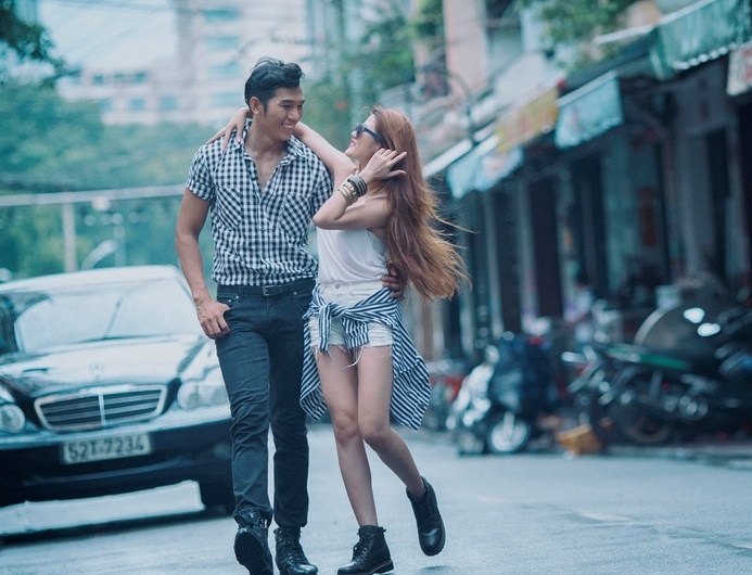 | Cặp đôi cũng có nhiều khoảnh khắc tình tứ trước ống kính. |