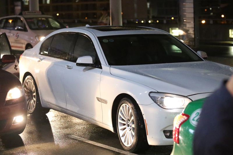 | Ngọc Trinh và ông bầu Vũ Khắc Tiệp được tài xế đưa ra sân bay bằng xe riêng. |