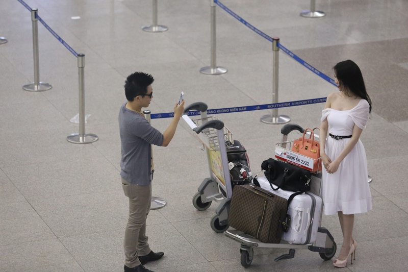 | Rất nhiều bạn trẻ nhận ra nữ hoàng nội y tại sân bay. |
