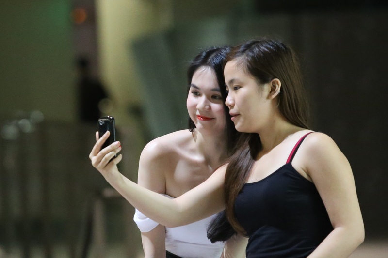 | Cặp đôi còn chụp ảnh "tự sướng". |