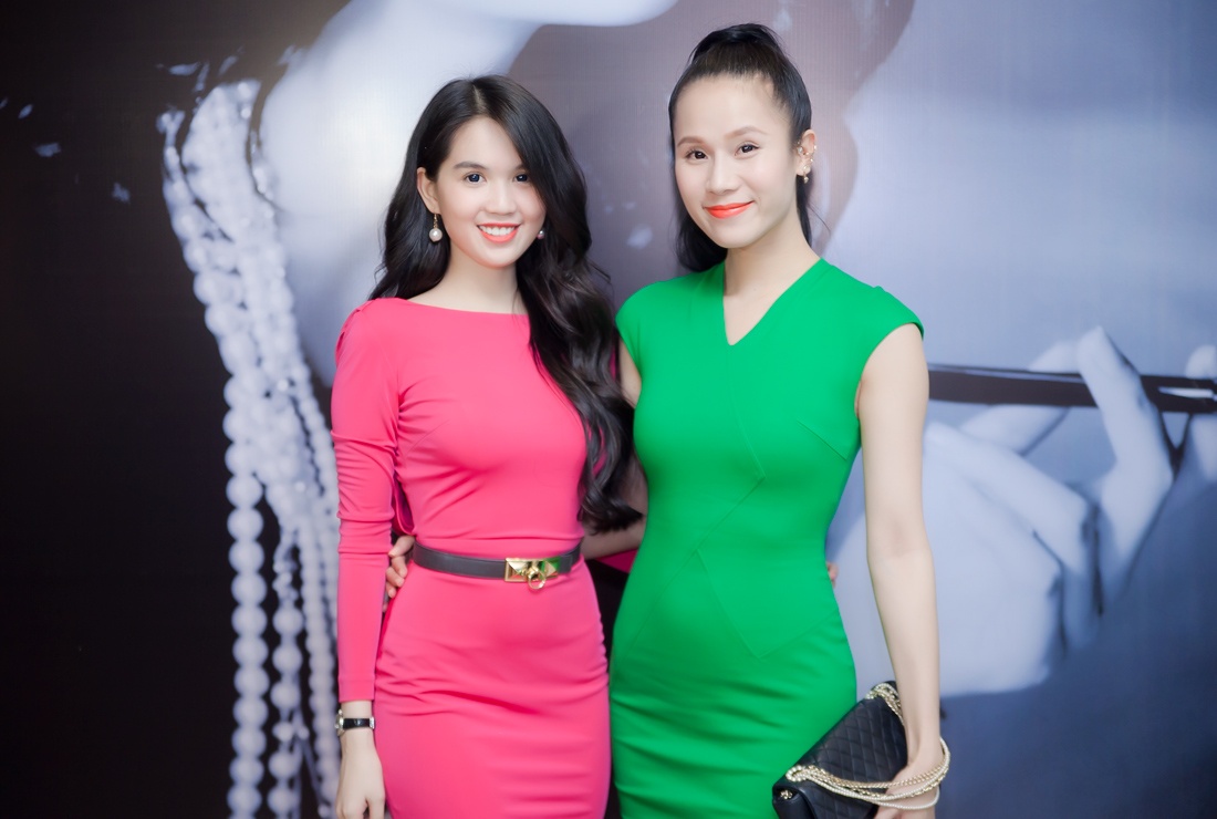 Thái Hà diện váy ôm kín đáo và không kém phần nổi bật khi đứng cạnh Ngọc Trinh.