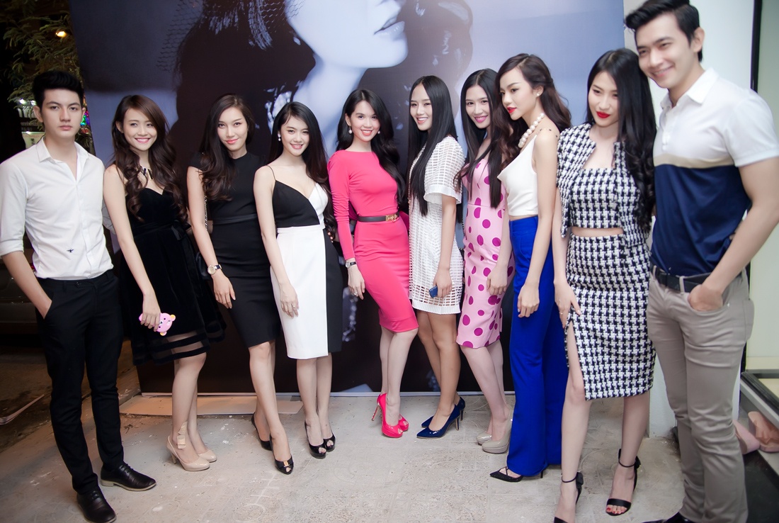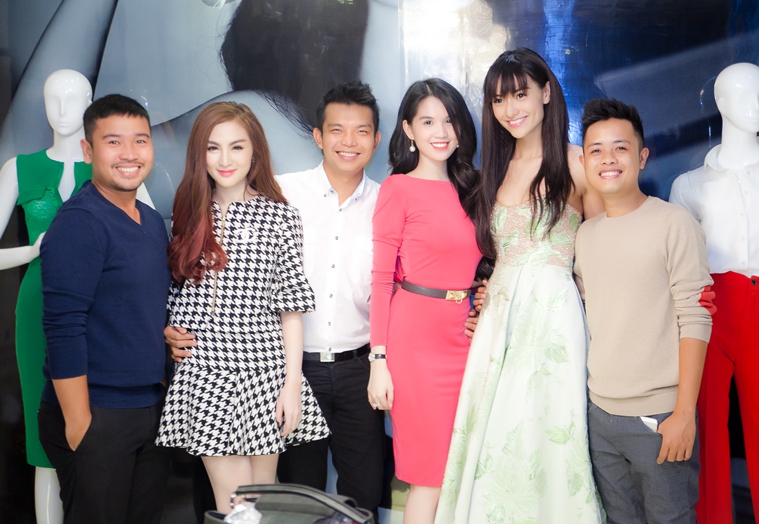 Nữ hoàng nội y đẹp dịu dàng bên ông bầu Khắc Tiệp trong ngày khai trương showroom thứ hai của cô. Ngọc Trinh cũng mời dàn người mẫu xinh đẹp đến chung vui với mình tối qua.