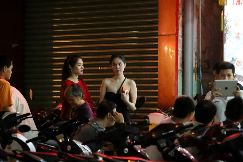 Ông bầu Vũ Khắc Tiệp cùng nhóm người mẫu của Venus bị bắt gặp khi đang thưởng thức bữa tối bên lề đường Q.5 TP.HCM. Dù diện trang phục hết sức đơn giản, ''Nữ hoàng nội y'' Ngọc Trinh vẫn rất nổi bật.